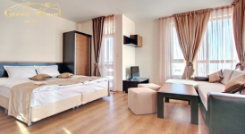 HOTEL GREEN WOOD 4* Localizare: complexul Green Wood este situat la 6 km de Bansko si 3 km de Razlog. In apropierea hotelului se afla terenul de golf Pirin Golf conceput de faimosul Ian Woosnam. Facilitati: centru spa, restaurant, lobby bar, shuttle bus pana la / de la partii. Dotari camere: complexul Green Wood ofera oaspetilor cazare in 28 camere duble, 53 studiouri, 19 apartamente cu 1 dormitor si 6 apartamente cu 2 dormitoare. Camerele sunt decorate modern, cu kichineta, TV LCD, DVD, internet etc. Studiourile sunt dotate cu 1 camera cu pat si fotoliu, kichineta. Apartamentele 1 au in dotare: un dormitor, living cu canapea, kichineta. Apartamentele 2 ofera turistilor: 2 dormitoare, living, kitchineta. GRATUIT: piscina interioara, sauna, baie de aburi, fitness, shuttle bus pana la/de la partii.