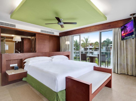 HOTEL BARCELO BAVARO PALACE DELUXE 5* Localizare: Hotelul Barcelo Bavaro Palace Deluxe 5*, apartine cunoscutului lant hotelier Barcelo, este amplasat direct pe frumoasa plaja Playa Bavaro, cu o lungime de 2 km. Distanta pana la aeroportul din Punta Cana este de 20 km. Facilitati: Hotelul Barcelo Bavaro Palace Deluxe 5* este complet renovat si se afla in centrul vastului complex Barcelo Bavaro Beach, ale carui facilitati si servicii pot fi folosite de oaspetii hotelului. Resortul dispune de mai multe piscine, cu bar, jacuzzi si Swim up bar (sezlonguri, umbrele de soare si prosoape de baie la piscine si pe plaja fara costuri suplimentare). Centrul de atractie al resortului este nou-deschisul Club House: aici va asteapta specialitati culinare in cele 2 restaurante bufet si 5 restaurante a la carte cu bucatarie mexicana, japoneza, spaniola, franceza si italiana. Aveti la dispozitie si un restaurant cu fructe de mare si specialitati de peste, precum si un steak house. Barcelo U-spa cu al sau modern wellness center ofera o gama larga de proceduri pentru trup si suflet. Oferta este completata de un salon de infrumusetare, shopping arcade, farmacie si serviciu medical. Un mini-shuttle circula la interval de 15 minute pentru a va transporta in toate zonele vastului resort. Programele zilnice de animatie si spectacolele de seara va umplu timpul liber. Totodata aveti intrare libera la Tropicalissimo Show, la discoteca si casino. Copiii au la dispozitie un Barcy mini club (4-12 ani). De asemenea copiii se pot distra si in parcul acvatic renovat (contra cost). Contra cost: Masaje si proceduri in cadrul Barcelo U Spa, golf pe terenul cu 18 gauri, proiectat de PB Dye, sporturi nautice cu motor, curs de windsurfing, scufundari, pescuit in larg, biliard, calarie. Gratuit: activitati sportive incluse, in limita disponibilitatilor: 7 terenuri de tenis cu nocturna (contra cost), windsurfing, navigatie in larg, hidrobiciclete, caiac, snorkeling, polo, tenis de masa, baschet, baseball, volei, centru fitness, aerobic, minigolf, darts. Camere: Toate cele 1402 camere ale hotelului Barcelo Bavaro Palace Deluxe 5* sunt repartizate in cladiri de 3 niveluri. Junior Suite Deluxe sunt mobilate modern si elegant si dispun de baie/dus, WC, oglinda, foehn, halate de baie, AC, ventilator de tavan, fierbator cafea/ceai, seif, minibar, telefon, TV satelit cu ecran plat, fier/masa de calcat, radio cu alarma, statie Ipod, precum si balcon sau terasa cu jacuzzi pentru 2 persoane. Contra cost: o selectie video si internet W-LAN.