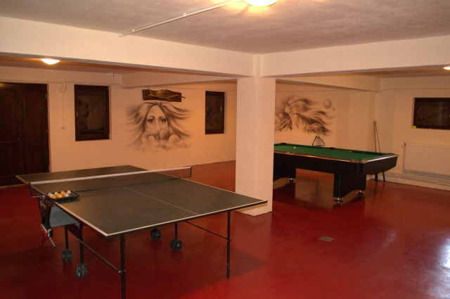 Casa Andrea va ofera un living generos cu o suprafata de 80 mp , o bucatarie complet utilata , un spatiu amenajat pentru gratare, un foisor si o baie dacica . La demisolul vilei va oferim o sala de jocuri dotata cu biliard si tenis de masa impreuna cu o sauna umeda.