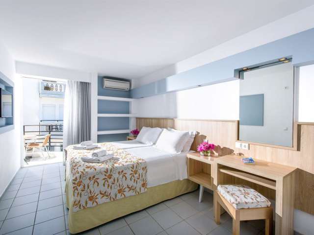 Camerele sunt dotate cu: aer condiționat, TV prin satelit, seif, mini-frigider, telefon direct, baie / dus, uscator de par, set de baie, o oglindă de mărire, balcon mobilat. Pat dublu sau două paturi de o persoană, saltele Cocomat anatomice.