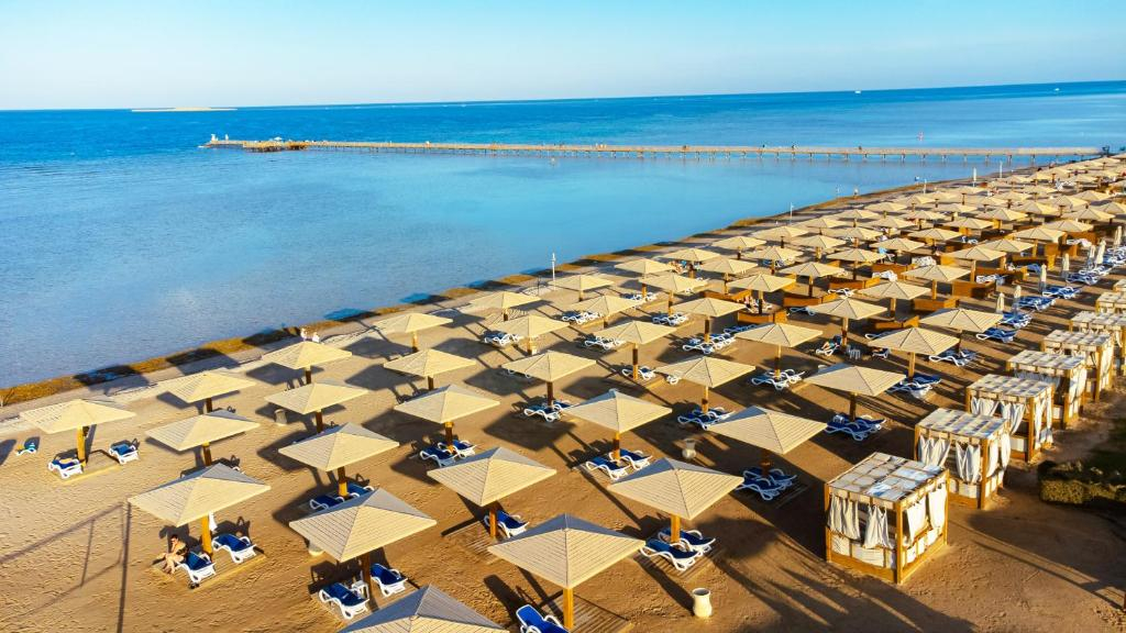 Situat lângă Marea Roşie şi la 10 km în afara animatei localităţi Hurghada, acest luxos hotel de 5 stele de pe plajă este un Paradis al luxului, cu parcul său acvatic mare şi terenul de golf cu nocturnă.