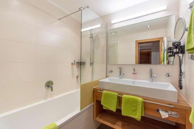 Furnished in a traditional Tyrolean style, the rooms include a flat-screen satellite TV, a refrigerator, and a bathroom. All rooms are accessible by lift. The hotel is suitable for disabled guests and features facilities like wheel-chair ramps and no-step showers.